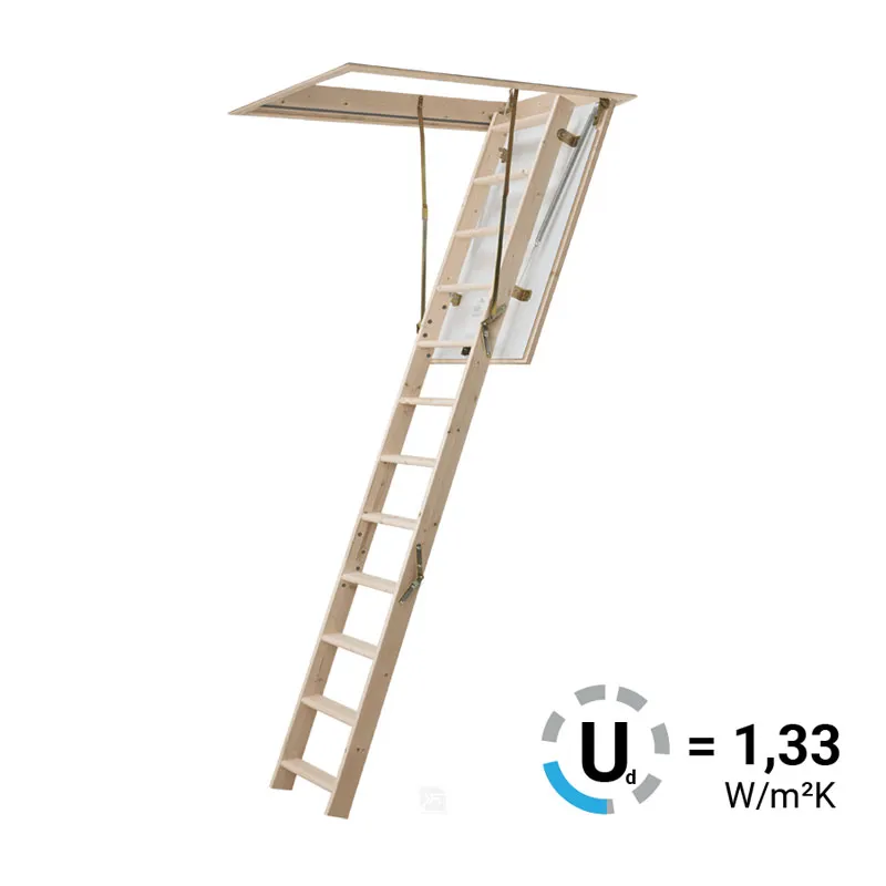 Автоматическая раздвижная ножничная чердачная лестница, с электромотором для дистанционного открывания.