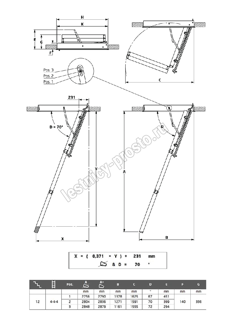 В комплекте: люк из сэндвич-панели, пружинный механизм "короб-люк", короб, трехсекционная лестница с сосновыми ступенями, замок люка, штанга для раскладывания лестницы.