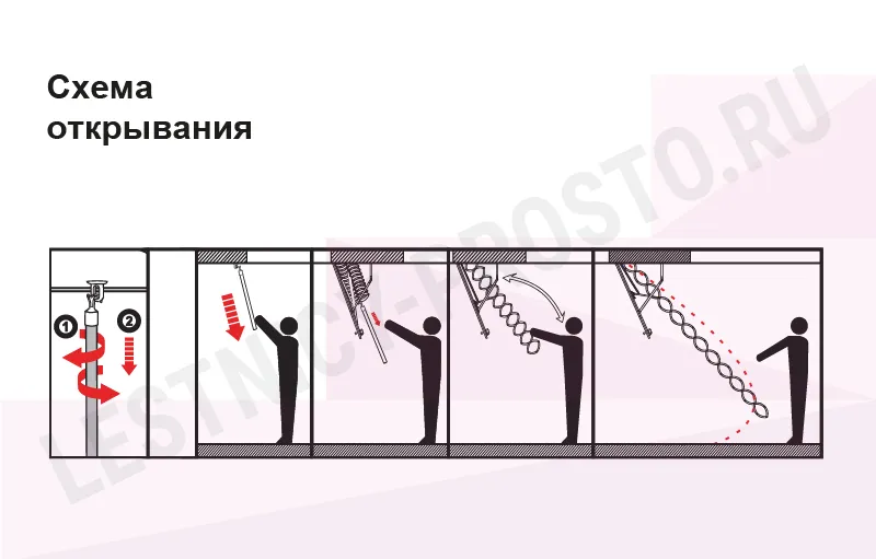 Все элементы лестницы выполнены из экологически чистых материалов и обработаны веществами, не содержащими тяжелых металлов. На ступенях антискользящие насечки. Короб лестницы изготовлен из металла. Термоизоляционная крышка типа "сэндвич" утеплена пенопластом, облицована с двух сторон ДСП белого цвета. Короб люка с уплотнителем. В комплекте деревянный стержень для открывания лестницы.