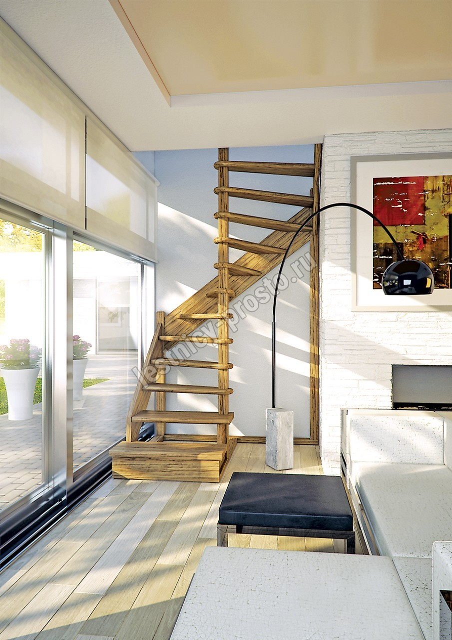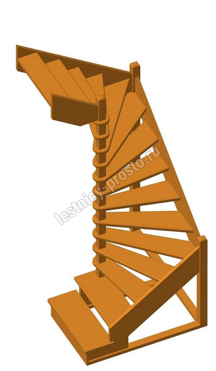 Деревянная межэтажная лестница ЛЕС-01 2915-3075 проем 1630-1370, Сосна