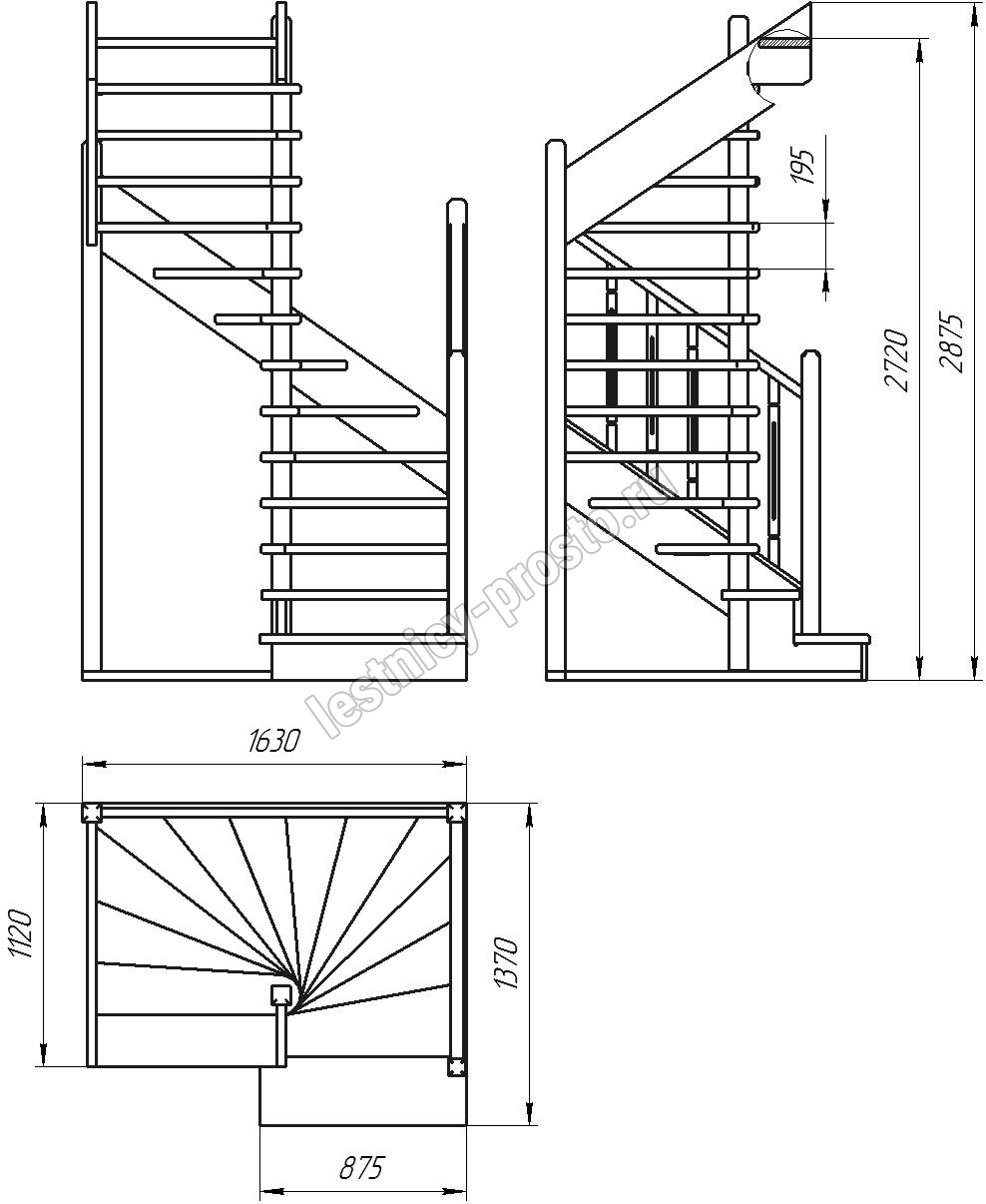 Деревянная межэтажная лестница ЛЕС-03 2720-2920 проем 1630-1120, Сосна