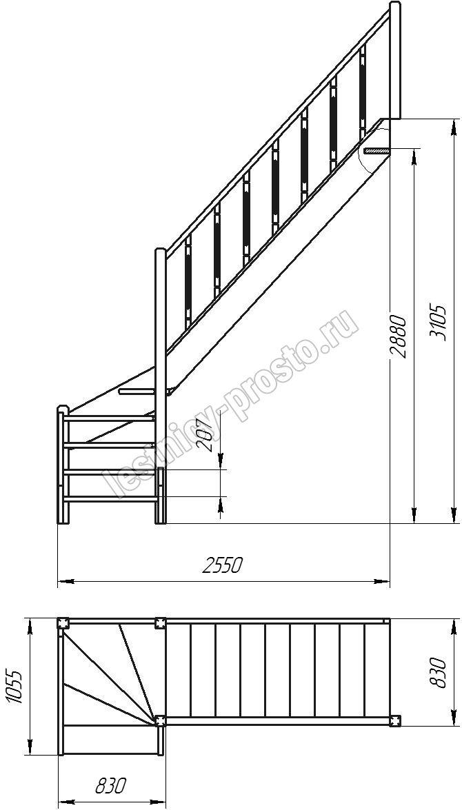 Компактная лестница, легко поддается доработке по высоте на объекте. Удобный поручень по второму маршу обеспечивает безопасность и законченный эстетический вид. Монтаж осуществляется силами двух человек на объекте по указаниям, приведенным в паспорте на лестницу.