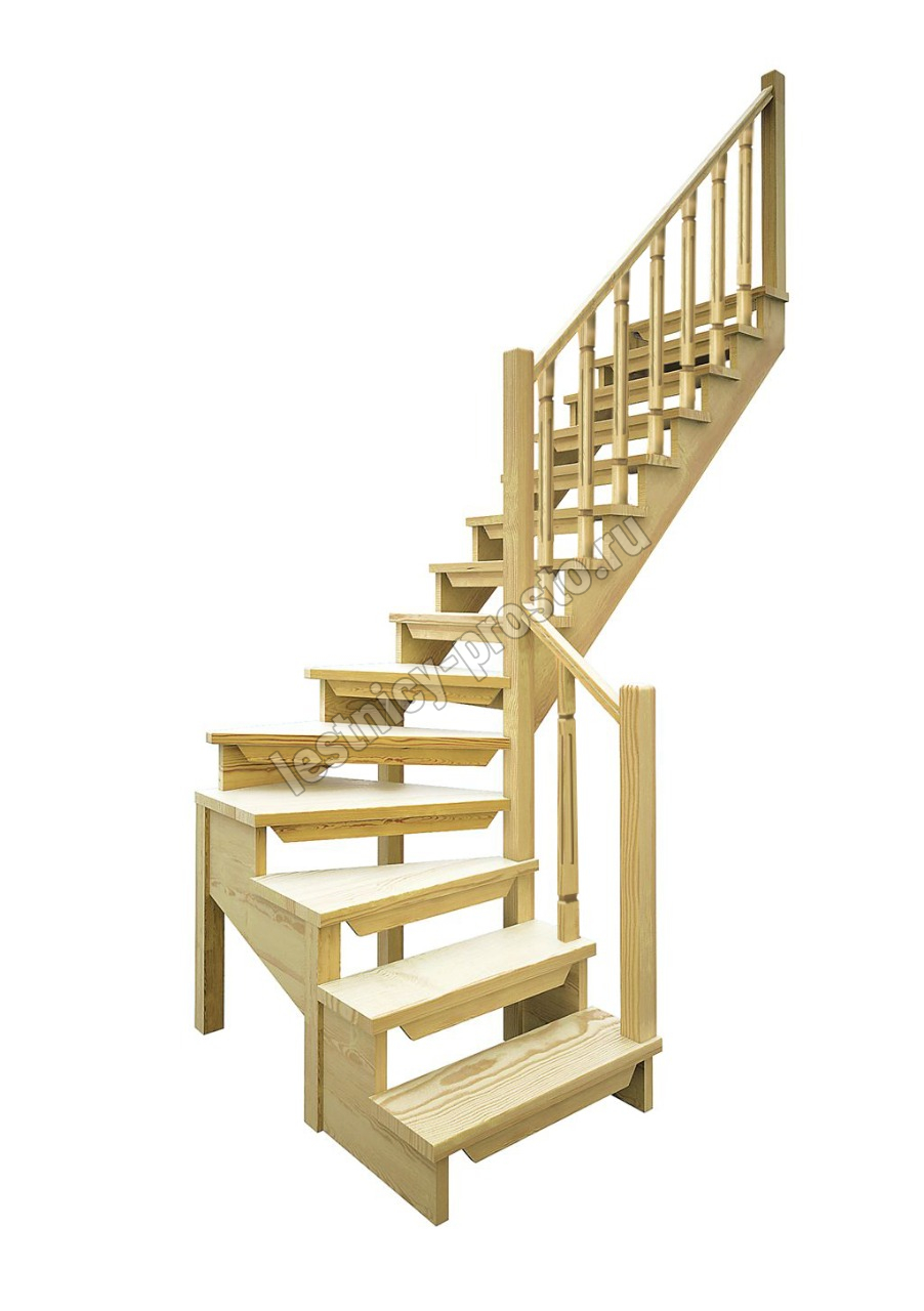 Деревянная межэтажная лестница ЛЕС-09 2900 проем 2580-900, Лиственница