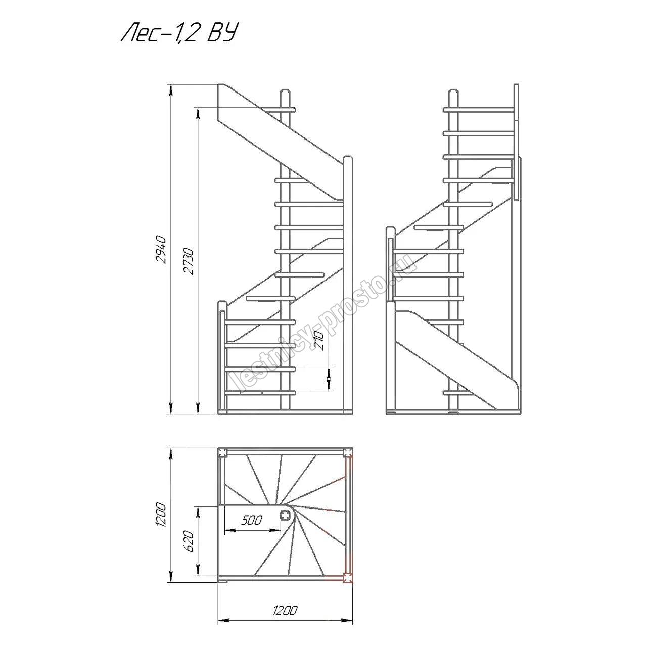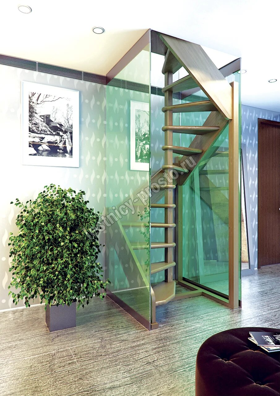 Деревянная межэтажная лестница ЛЕС-1,2ВУ, Лиственница