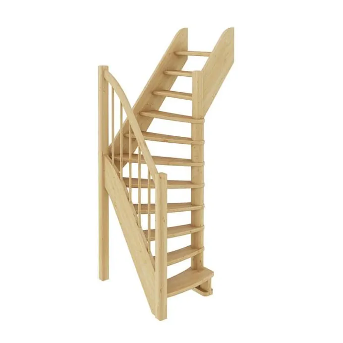 Лестница изготовлена из древесины хвойных пород. Базовый комплект включает в себя деревянные элементы лестницы и ограждения без какого-либо покрытия. Поставляется в разобранном виде, упакованная в ящик. Монтаж производится силами двух человек, в соответствии с указаниями, приведёнными в паспорте лестницы.