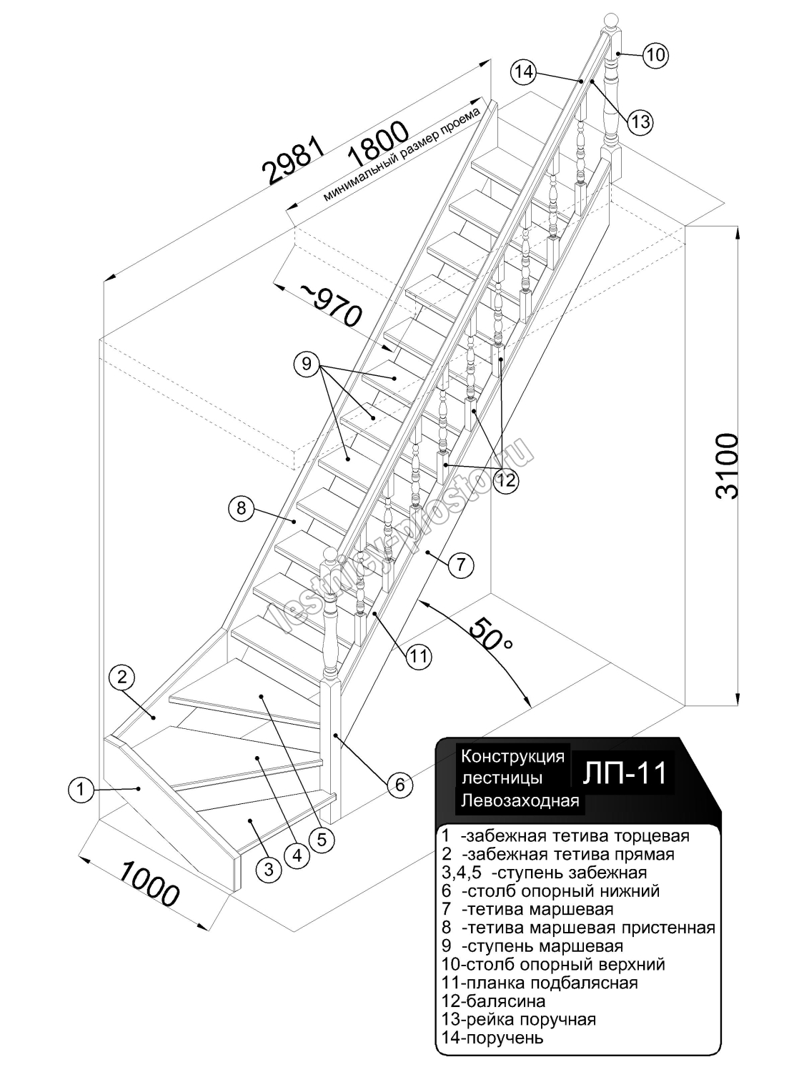 Лестница деревянная Престиж ЛП-11