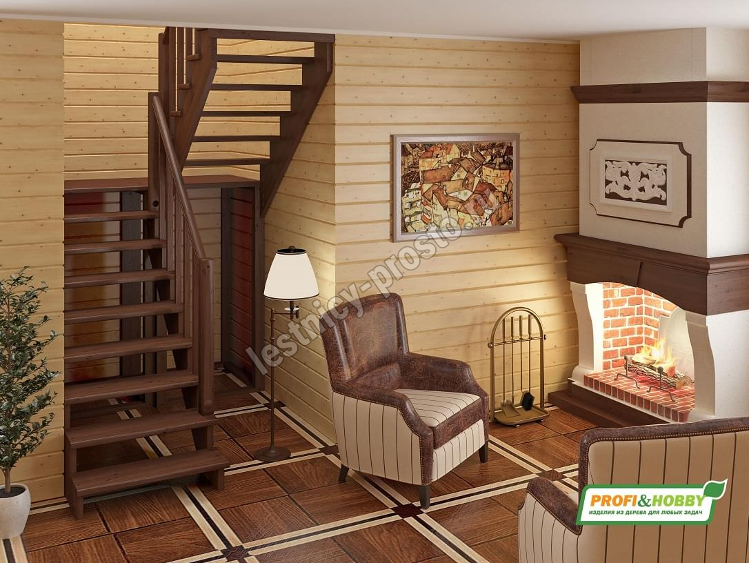 Ступени и поручень лестницы изготовлены из бука, остальные элементы из сосны. Возможно изготовление данной модели полностью из бука.