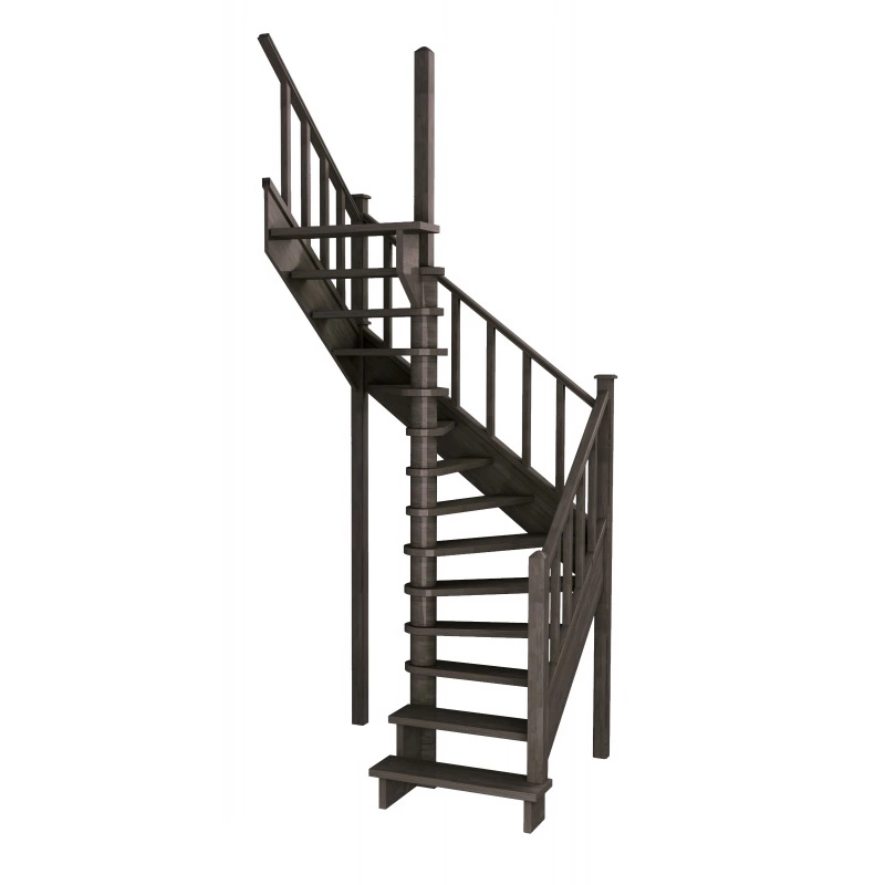 Ступени и поручень лестницы изготовлены из дуба, остальные элементы из сосны.