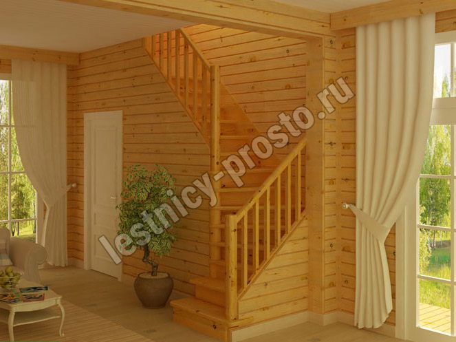 Ступени и поручень лестницы изготовлены из дуба, остальные элементы из сосны.