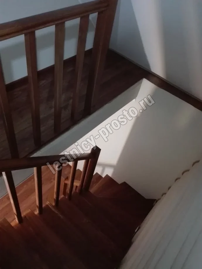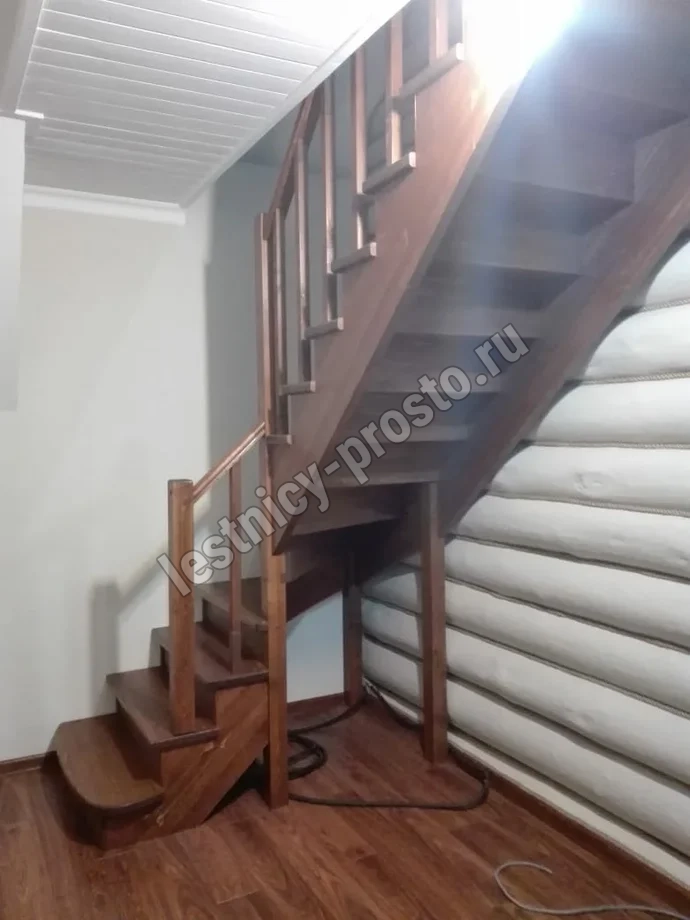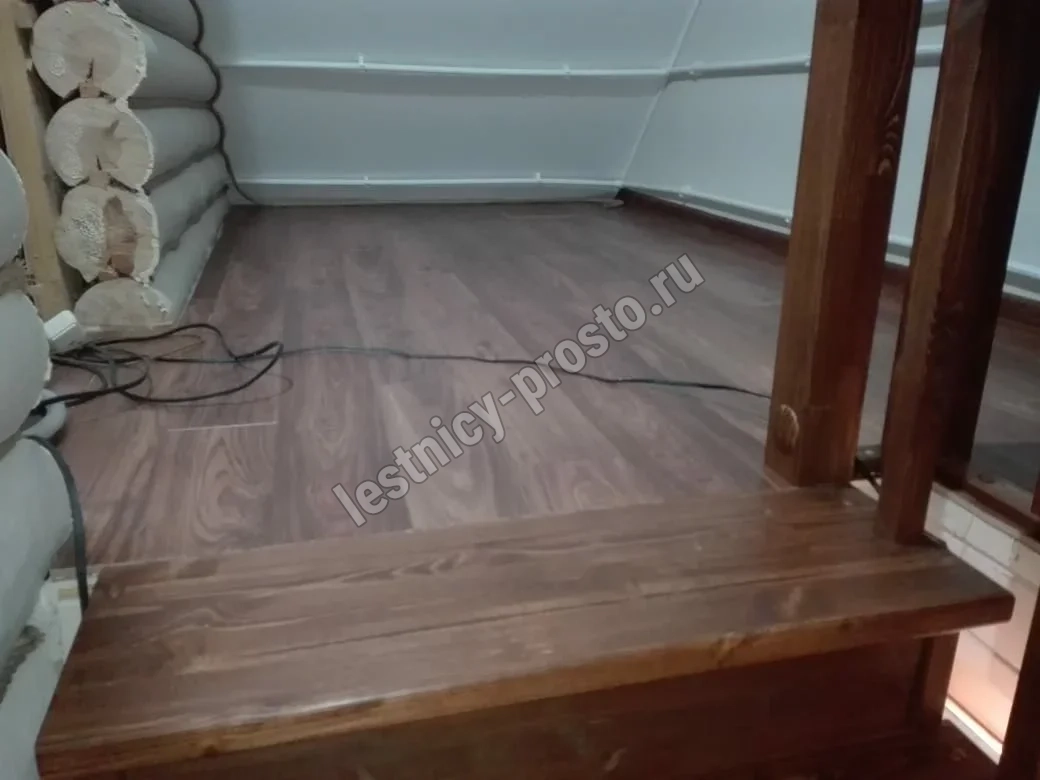 Обратите внимание! Данный вариант лестницы изготовлен из сосны эконом-класса, имеющей заметные серые/синие вкрапления цвета - это не отражается на прочности лестницы, но может быть заметно при покраске в светлые тона.
