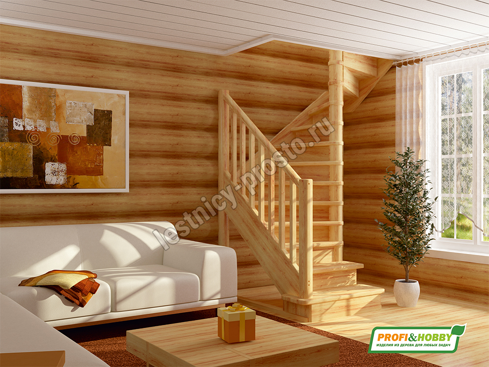 В производстве лестницы ЛС-05м под покраску используется сосна с небольшими изменениями цвета, что практически не влияет на ее механические свойства и почти незаметно при покраске в темные цвета. Базовый комплект включает в себя деревянные элементы лестницы и ограждения без какого-либо покрытия.