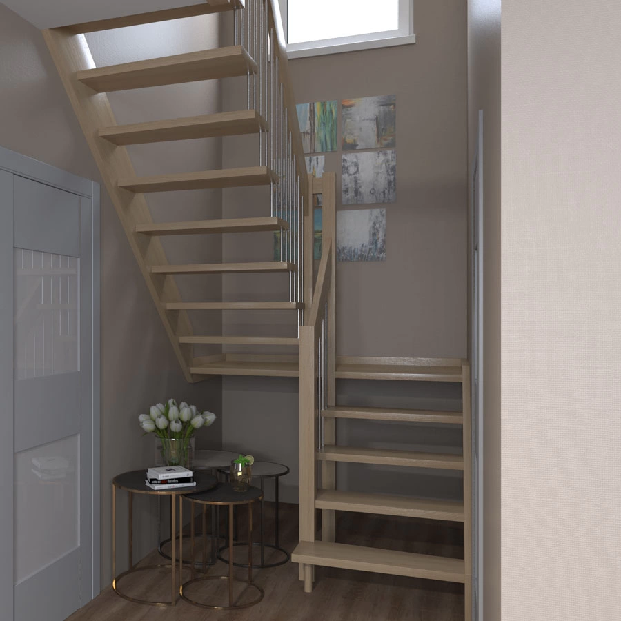 Лестница Prosto Console п-образная забежная, дуб h270 см (11 ступеней)