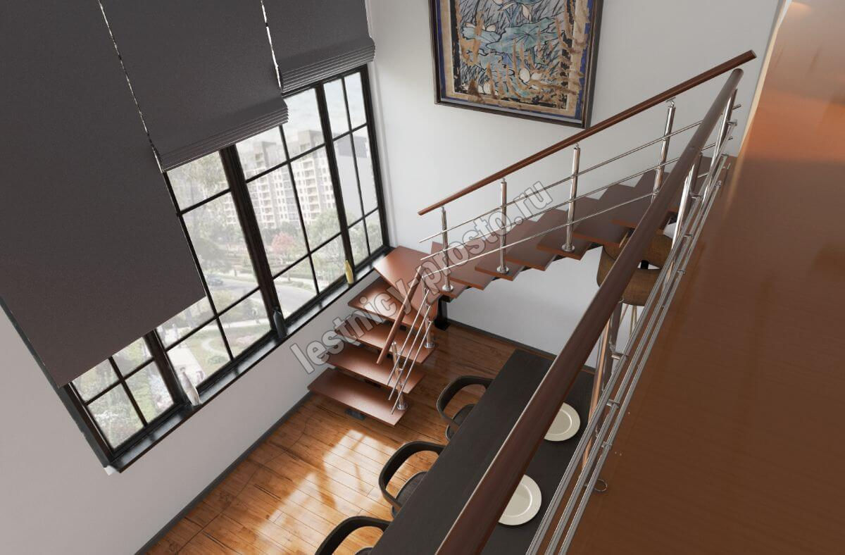 Лестница PROSTO MONO Г-образная h337.5 см, ступени бук