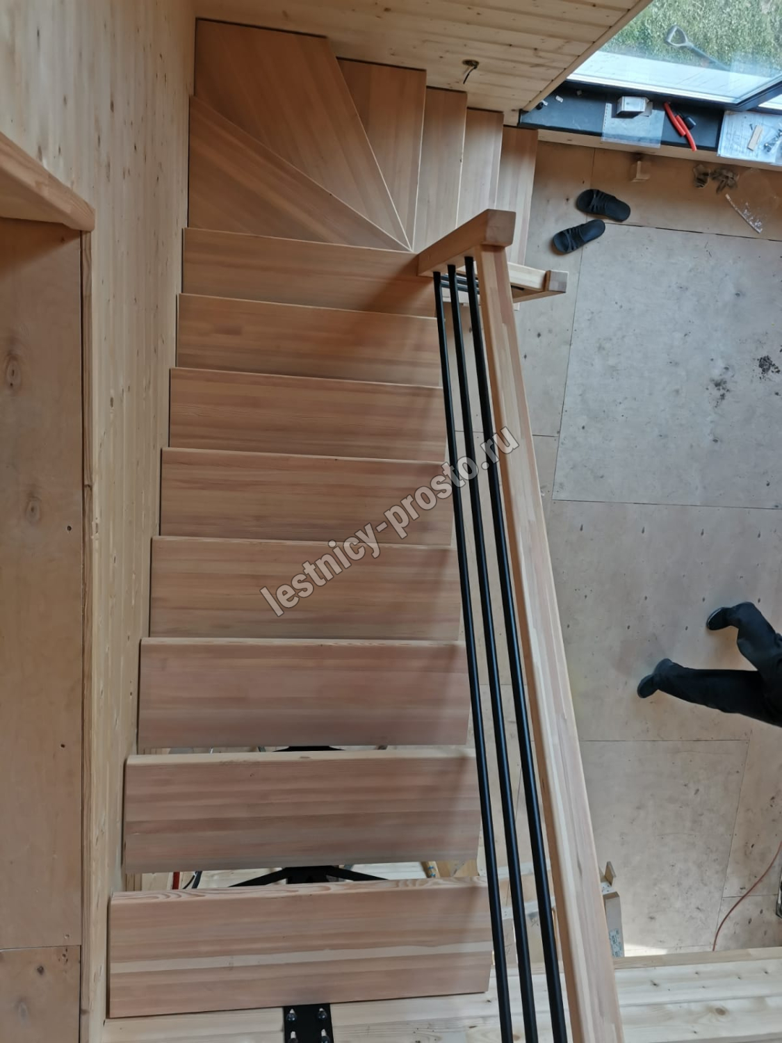 Лестница PROSTO MONO STEP TRINITY г-образная забежная, ступени лиственница