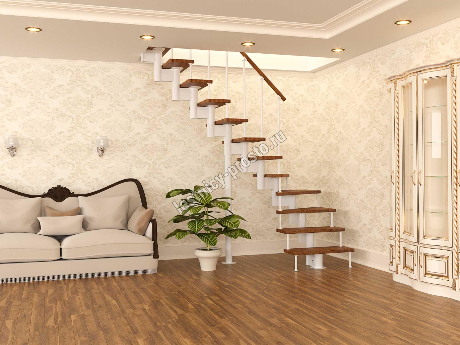 Модульная лестница PROSTO MODULE Г-образная, h225, лиственница