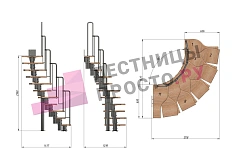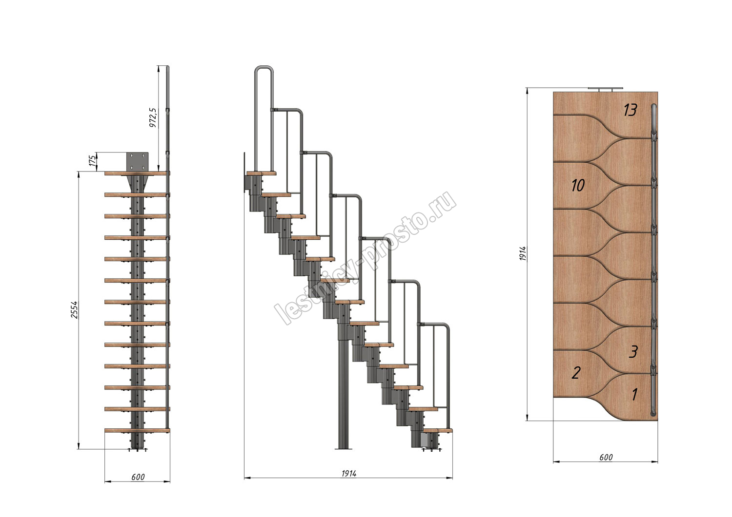 | Лестница Prosto Urban Black гусиный шаг 600 мм, h216-312 см (12 ступеней), бук |