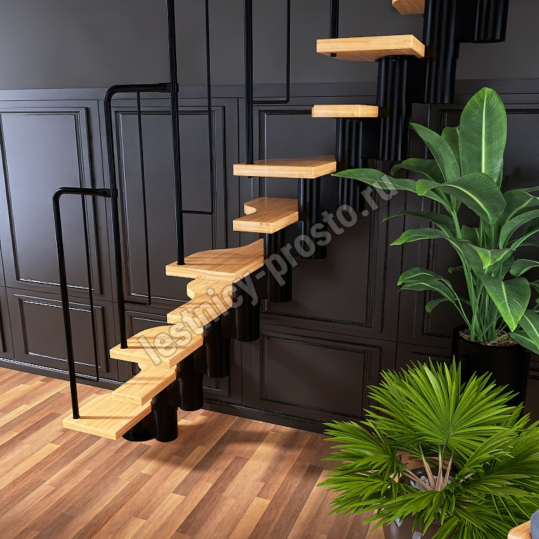 | Лестница Prosto Urban Black гусиный шаг 600 мм, h198-288 см (11 ступеней), бук |