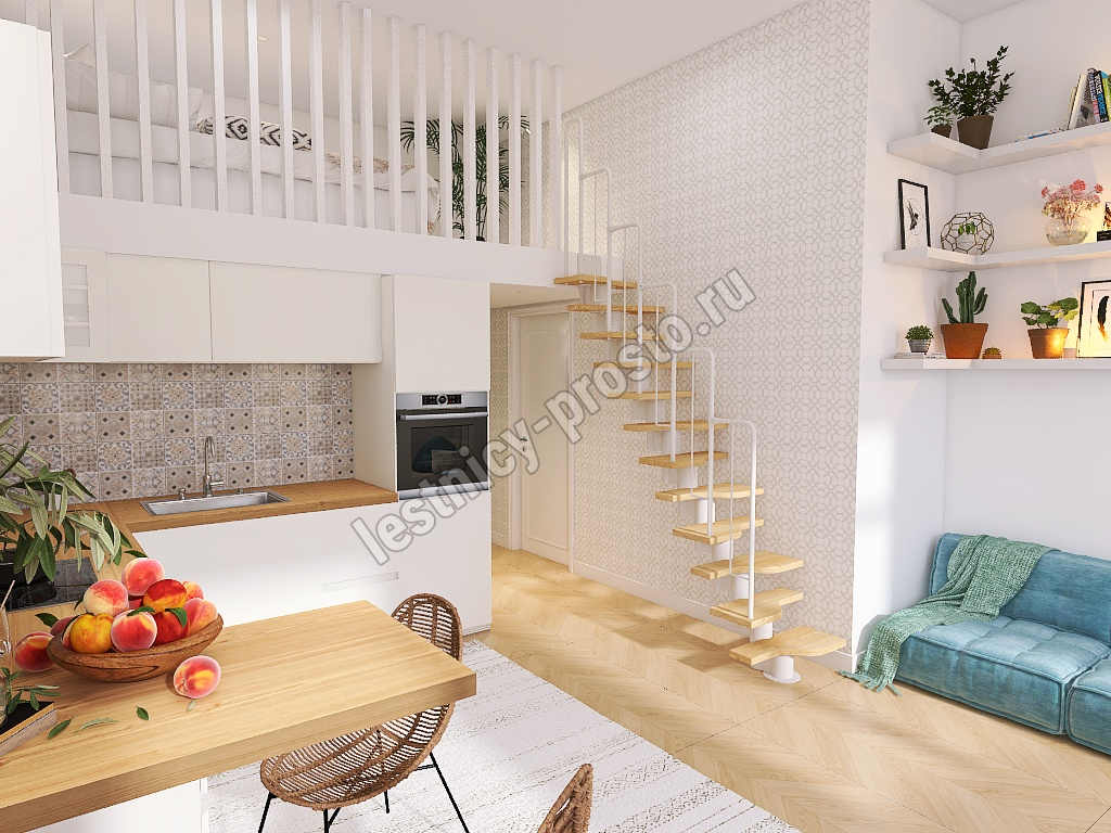 Лестница Prosto Urban White гусиный шаг 700 мм, h198-288 см (11 ступеней), бук