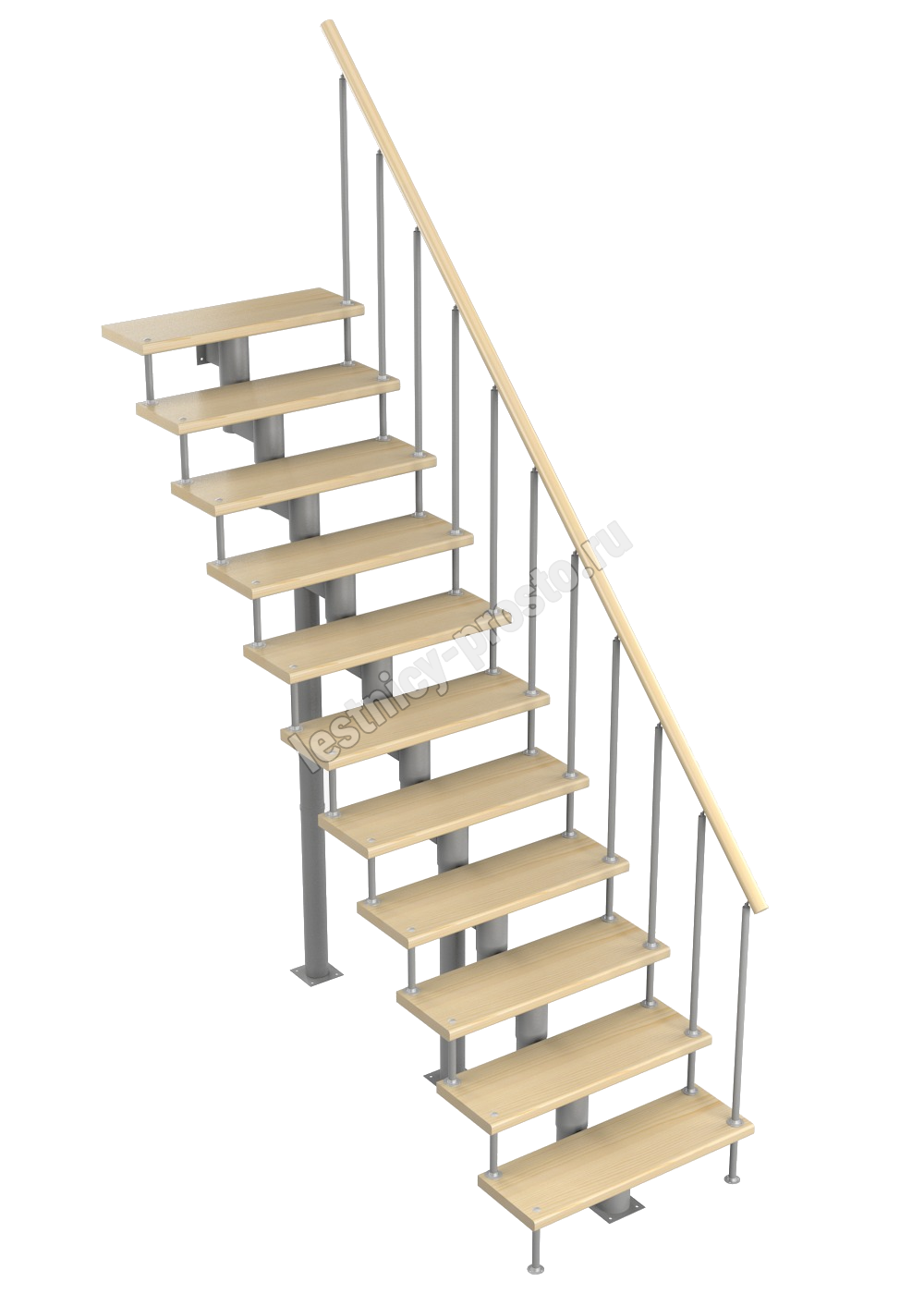 Модульная лестница Стандарт 2475-2585, Черный, Сосна, Нержавеющая сталь