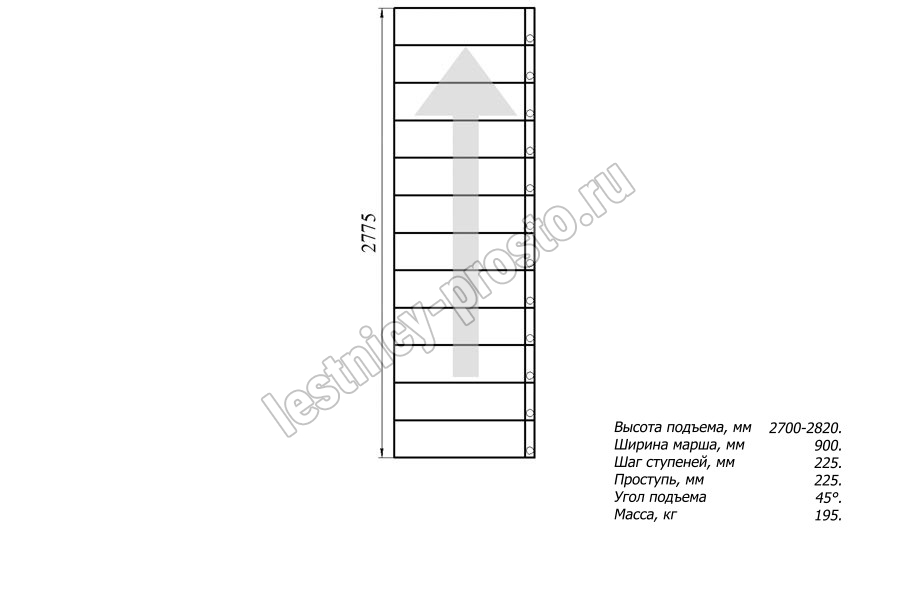 Модульная лестница Стандарт 2700-2820, Серый, Бук, Нержавеющая сталь