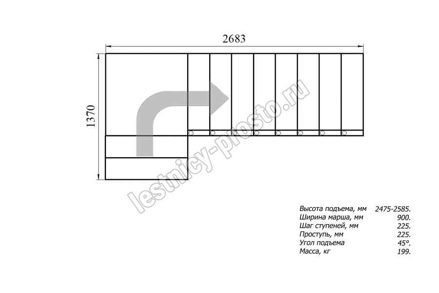Модульная лестница Статус 225 2475-2585, Белый, Лиственница, Крашеная