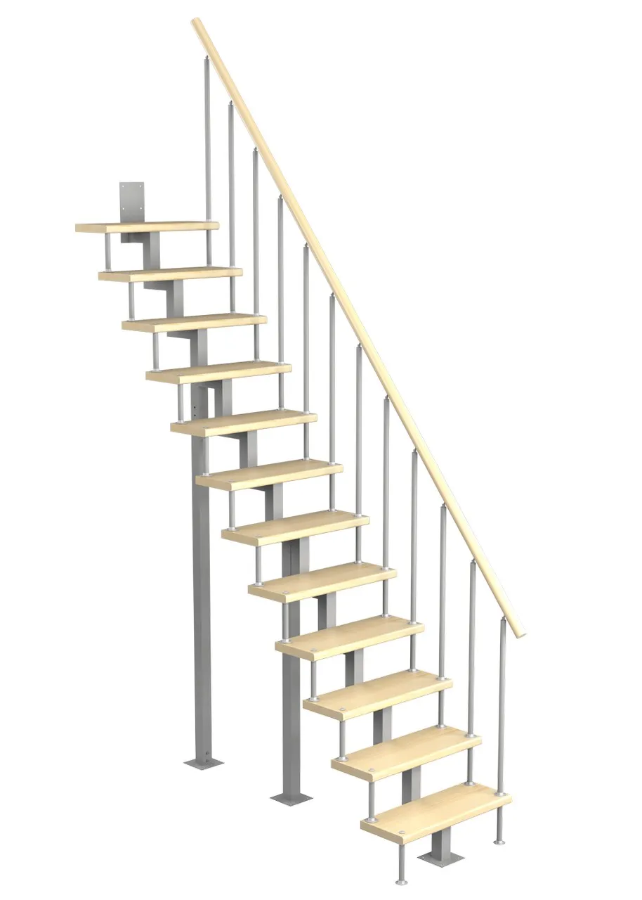 Модульная малогабаритная лестница Линия 2700-2925, Белый, Бук, Нержавеющая сталь