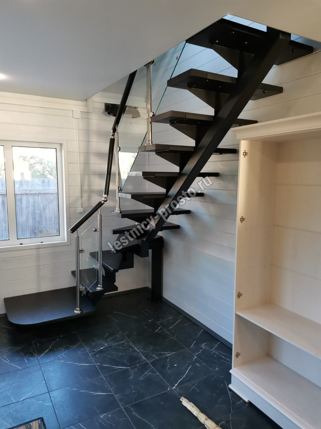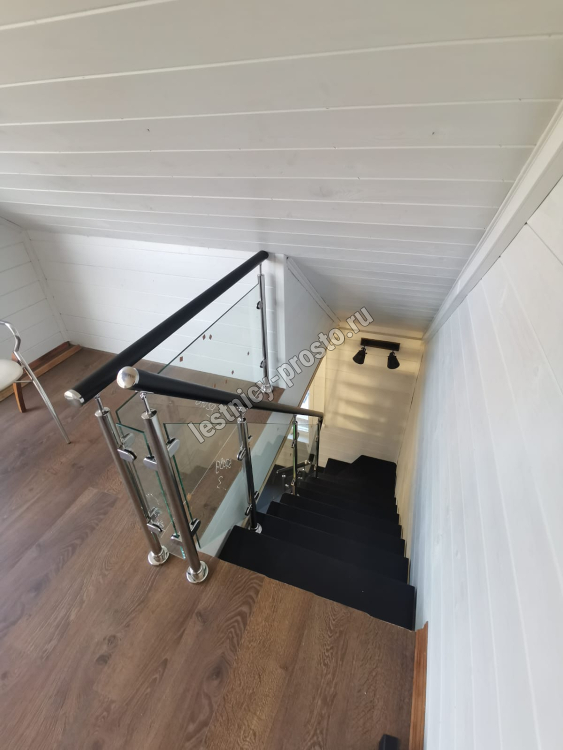 Стеклянная лестница на металлическом каркасе LP-3103