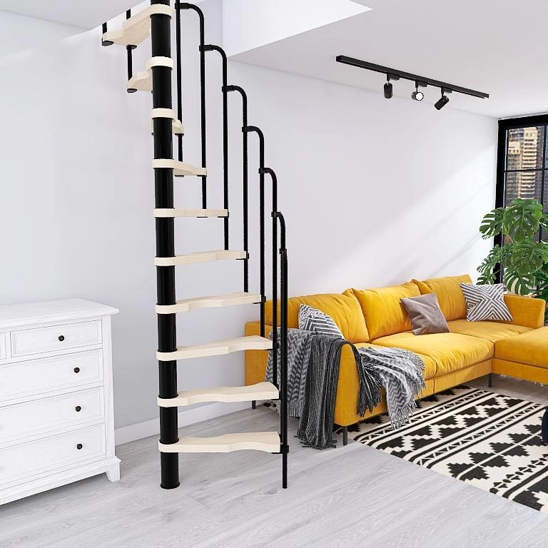 Новинка 2021 года !!! Не имеет аналогов в России по своему надежному конструктиву среди винтовых лестниц. Используемый материал - древесина шлифованная , не окрашенная и металл покрытый порошковой краской. Поручень - пластиковый, уже изогнутый. Цвет поручня в ассортименте.