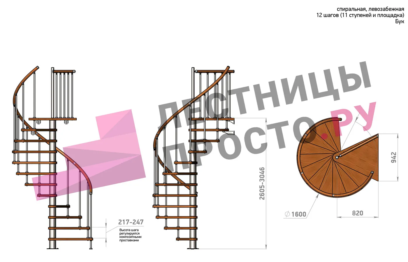 Высота лестницы 2605 - 3046 (11 ступеней) мм