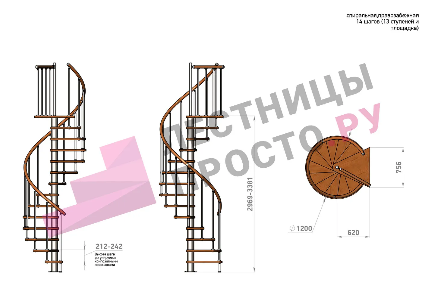 | Винтовая лестница Prosto Spiral White D120см, h254.5-289.8 см |