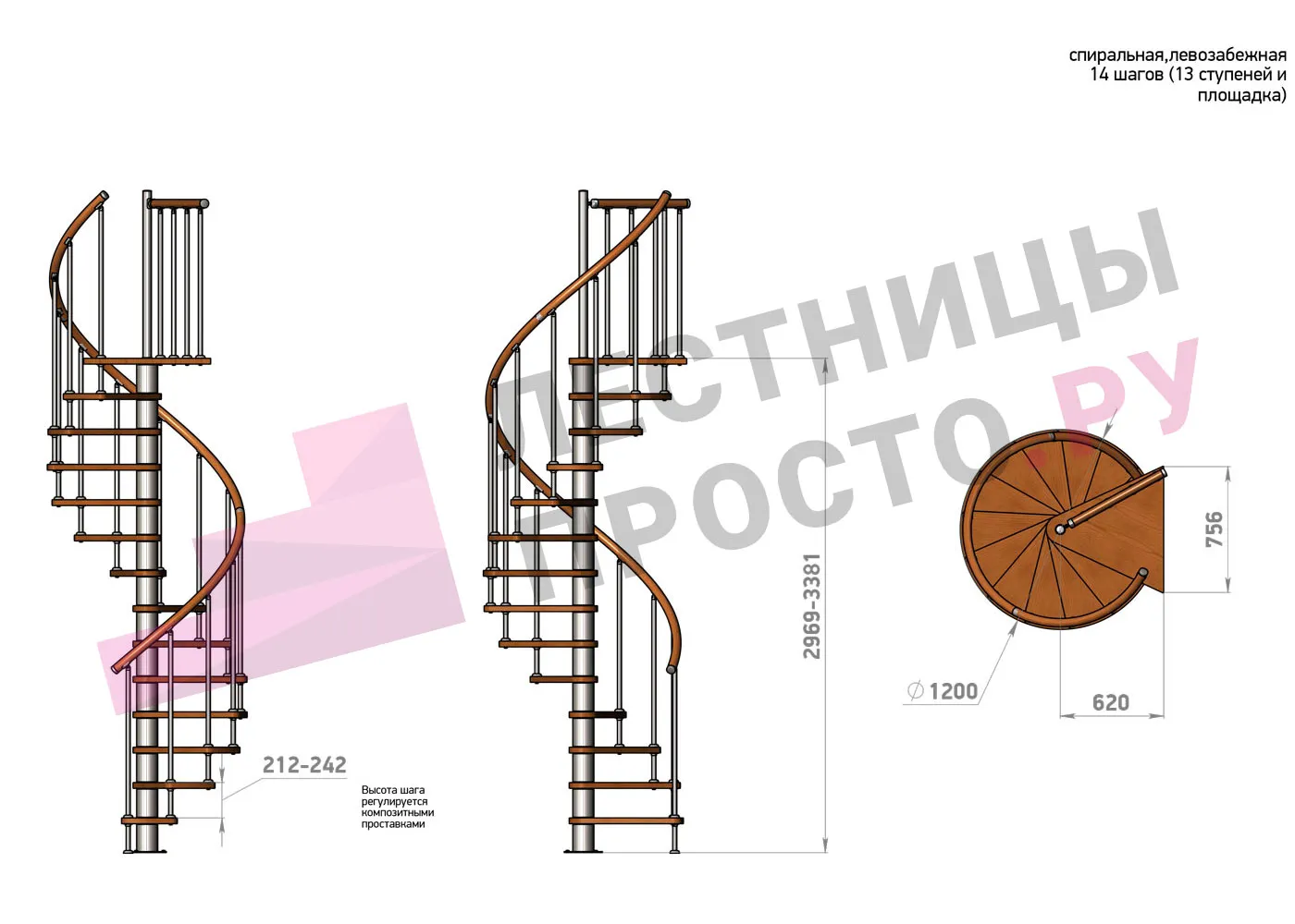 | Винтовая лестница Prosto Spiral White D120см, h318.2-362.3 см |