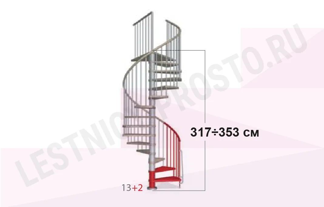 При монтаже лестницы, с помощью специальных пластиковых вставок, варьируется высота шага в пределах от 210 мм до 235 мм, за счёт чего общая высота лестницы может быть получена в пределах от 2530 мм до 3060 мм.