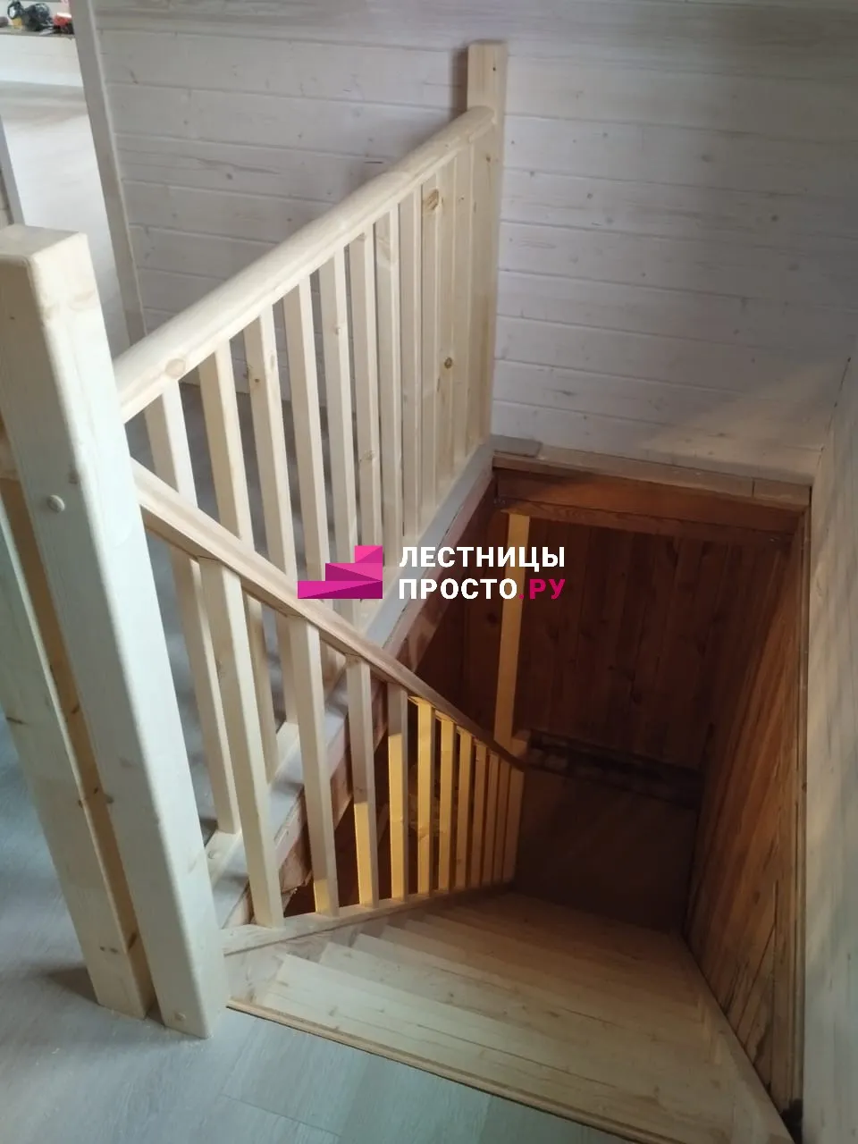 Лестница из сосны с поворотом и подступёнками для частного дома