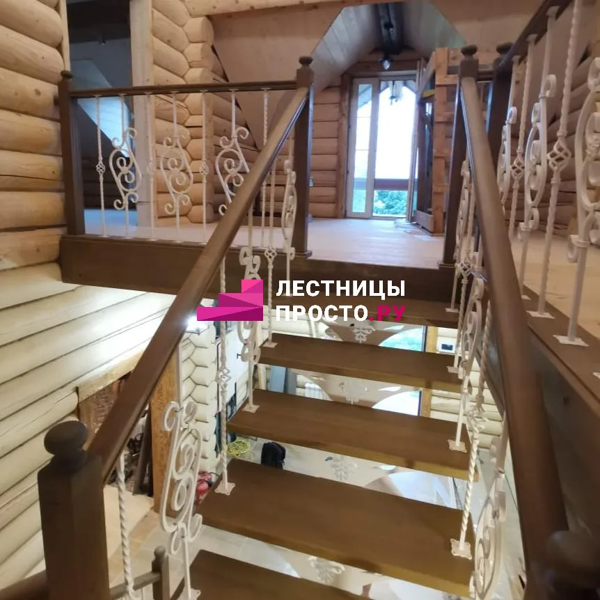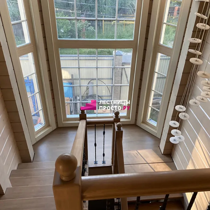 Лестница сосна-бук с двумя площадками ЛГ 200