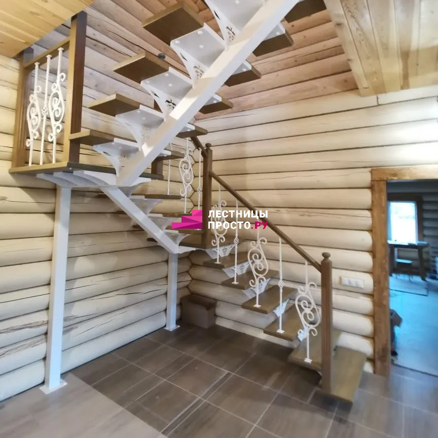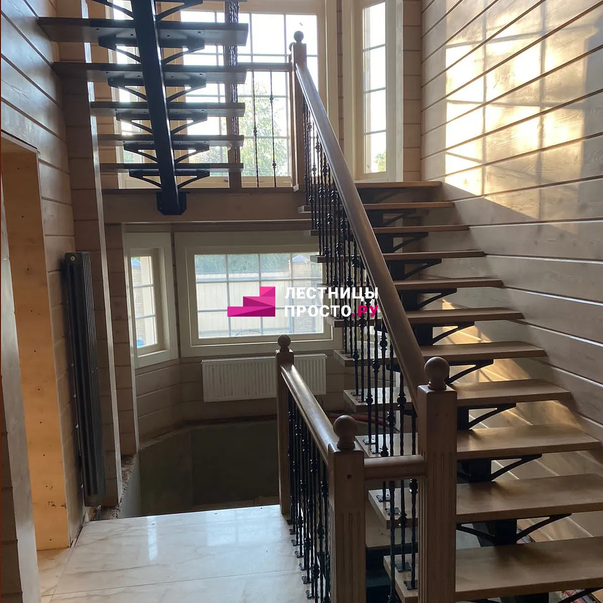 Лестница на центральном каркасе с коваными балясинами ЛП 703